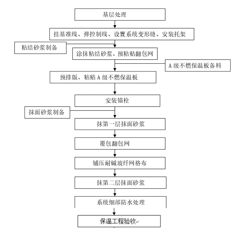 彈控制線、吊垂直線、預排保溫板、設置系統變形縫、設置托架應滿足以下要求: